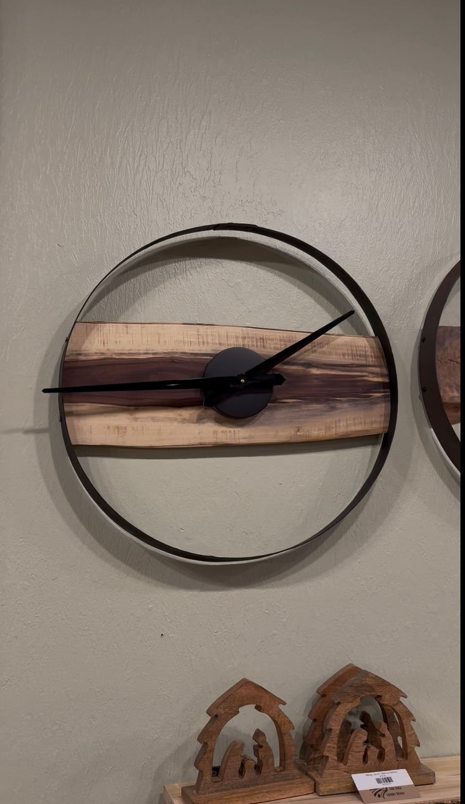 Each piece is unique! Approximately 24" barrel ring, live edge clock handmade in Blue Ridge, GA.